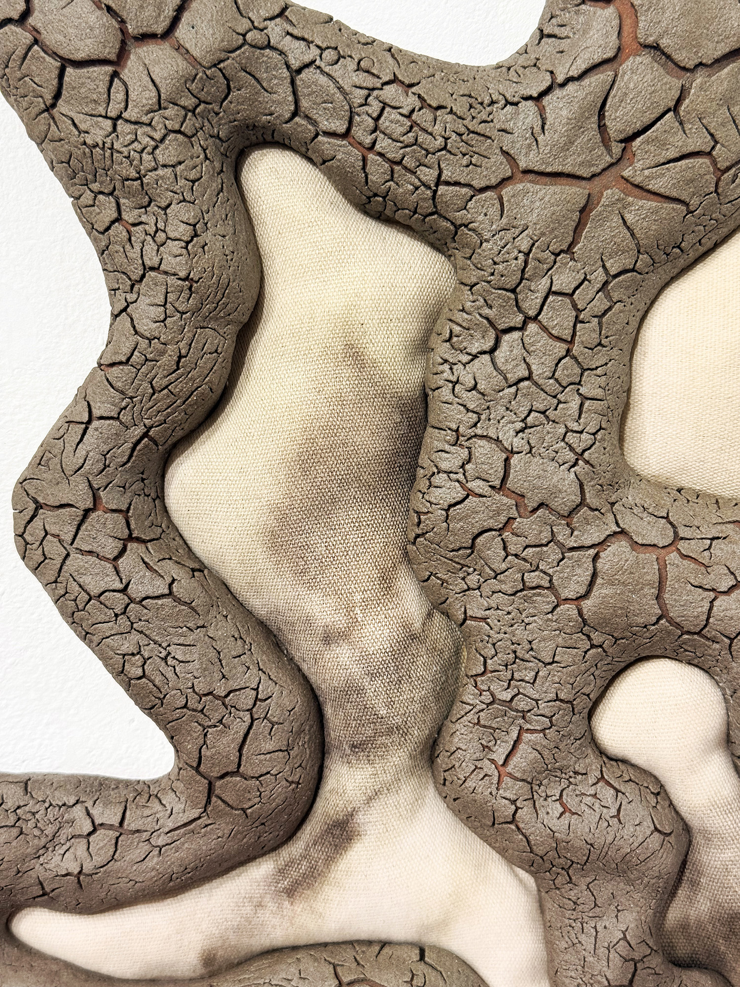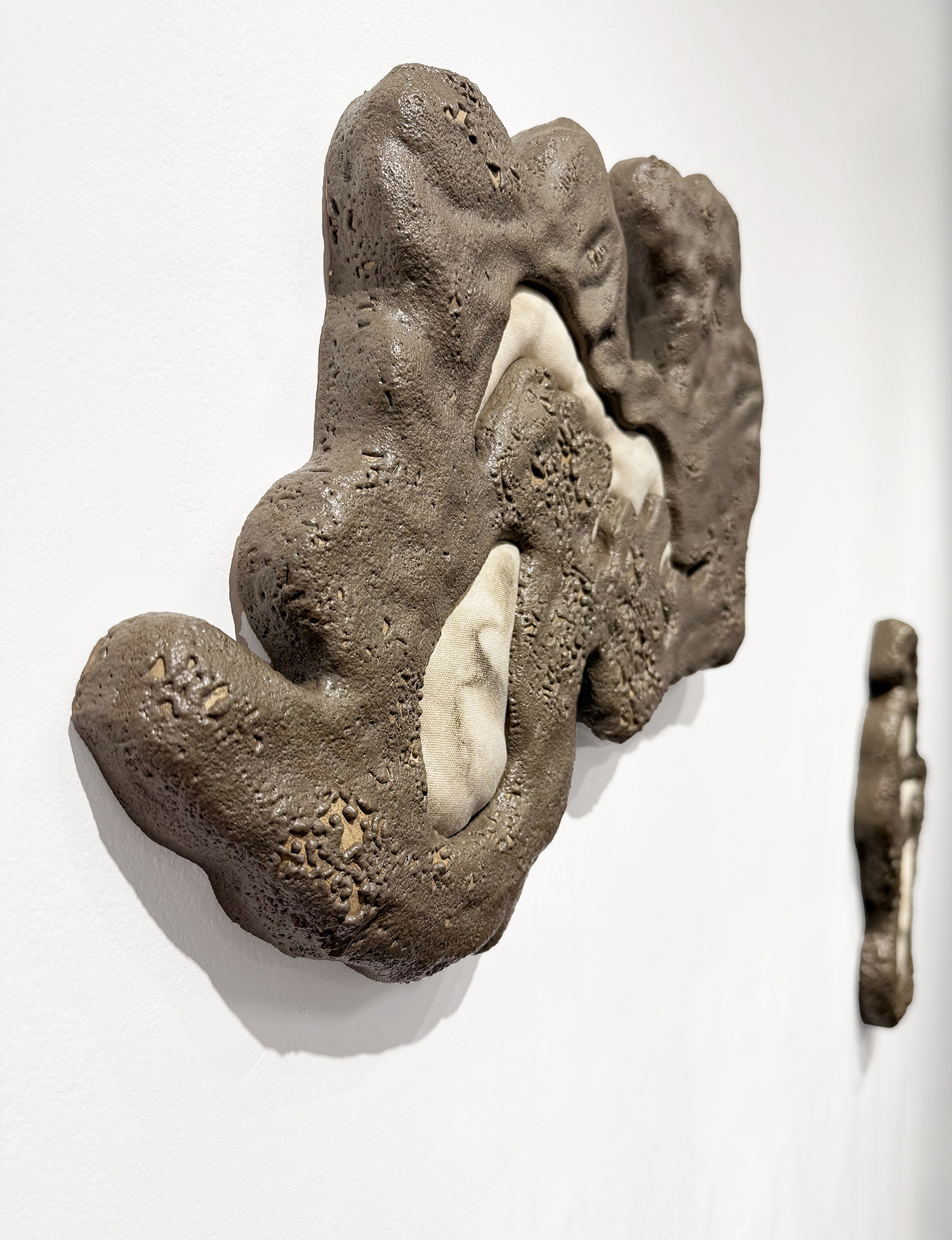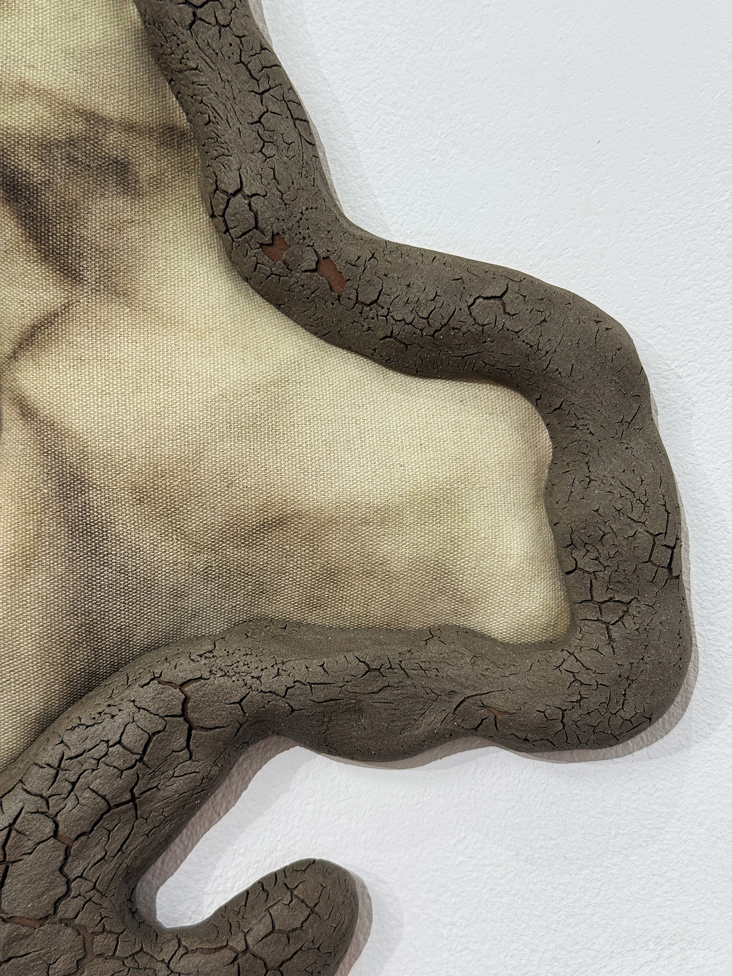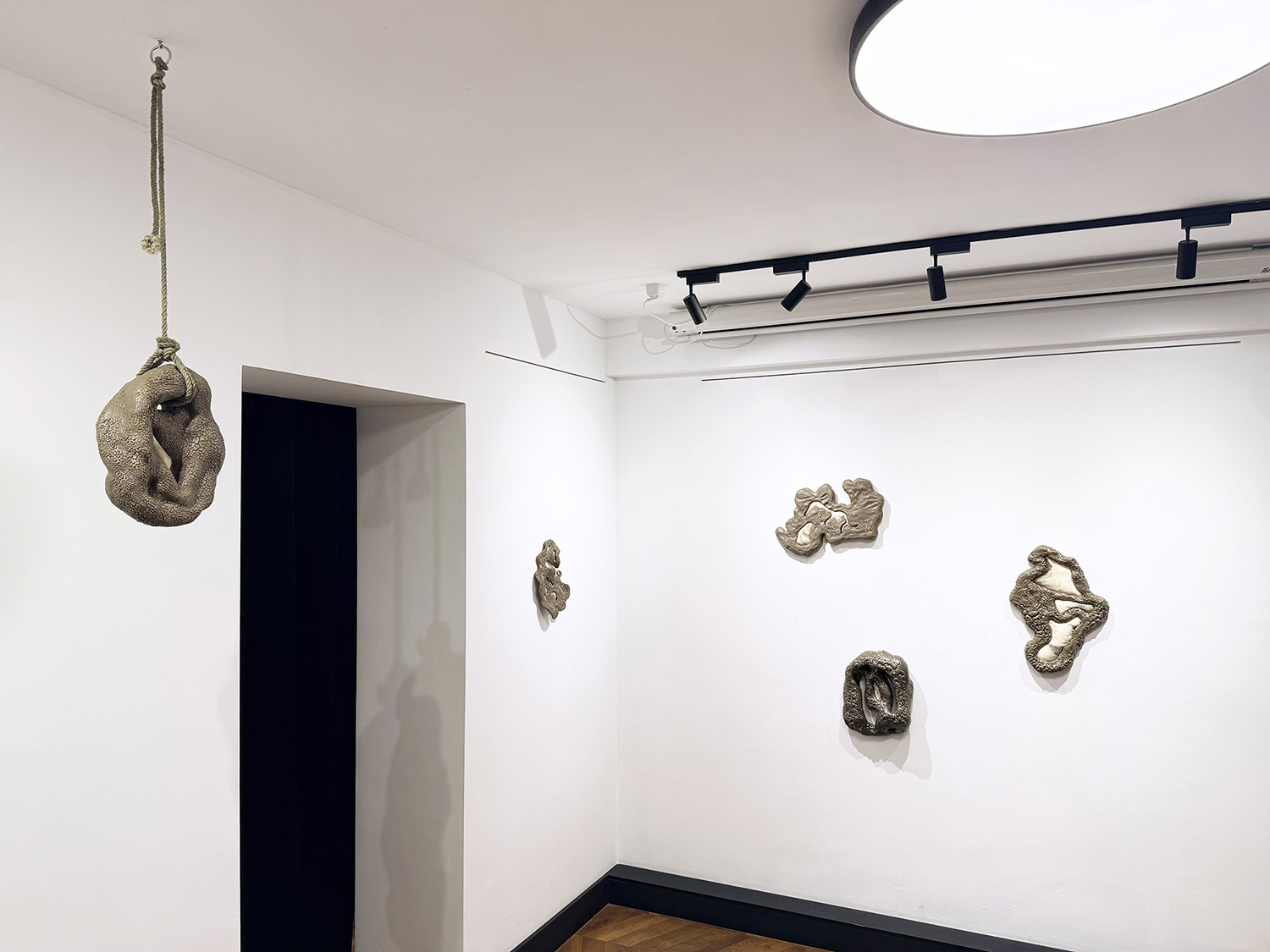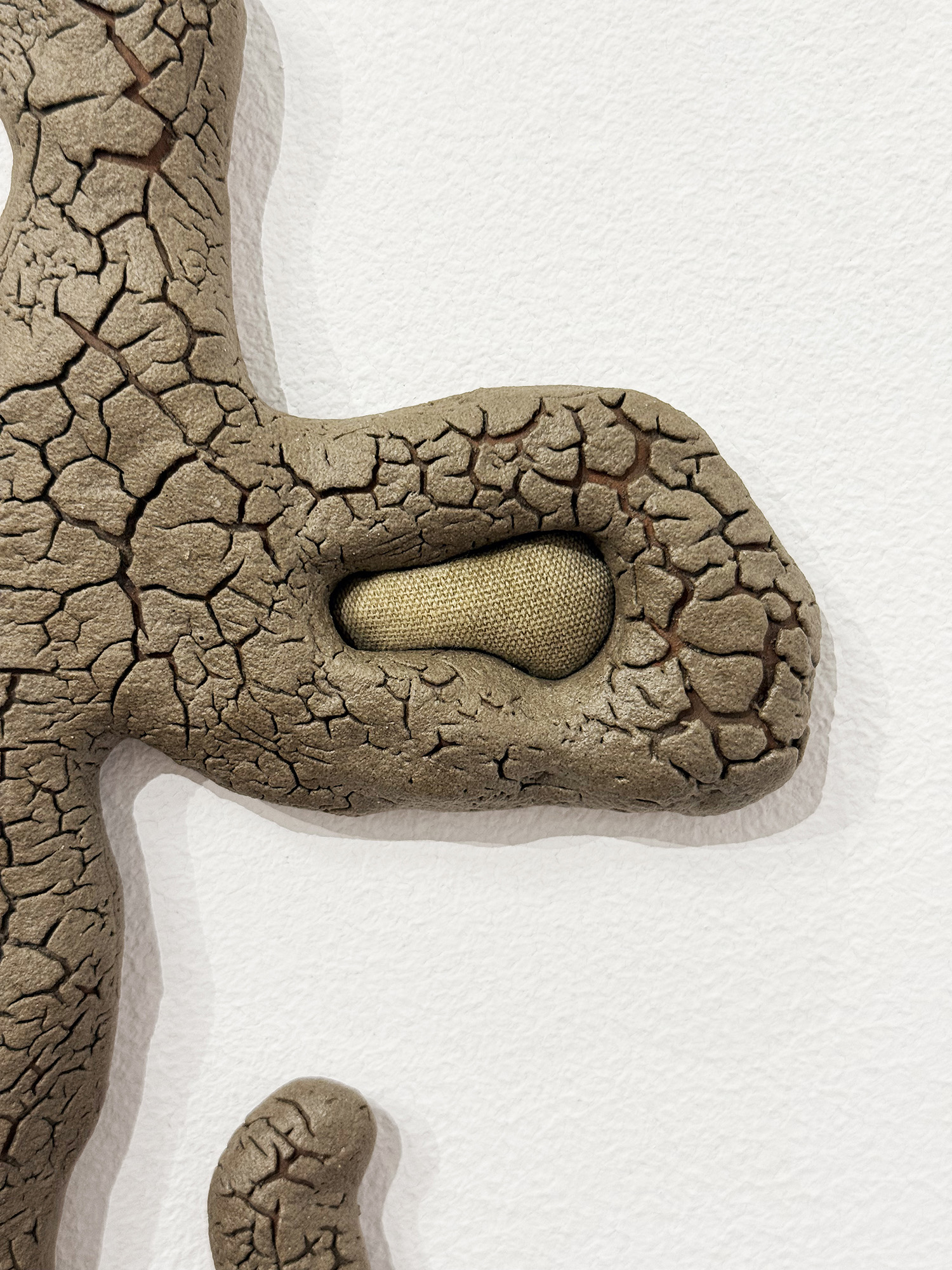 The artist turns her attention to the processes of sinking and surfacing—both as real phenomena in nature and as a metaphor for the human subconscious. In this project Maria presents her newest works, connected to her interest in ceramics. The material carries its own semantics and conjures an image of mud, as if scooped from the bottom of the Dragoman Marsh. The irregular rounded forms of these ceramic pieces, their textures and apertures, summon associations with water, earth, and living organisms—all those microscopic creatures that our eyes cannot catch but without which life would not flourish within this particular ecosystem. Marshes are alive and unpredictable; in them nature pulses by invisible laws, and Maria's works impress this upon us through the harmony of their “naturalness”. Into the openings of the ceramic forms the artist weaves fragments of canvas that was deliberately “swamped” (here the term is used by analogy with “buried”) at the bottom of the Dragoman Marsh and left there for six months.