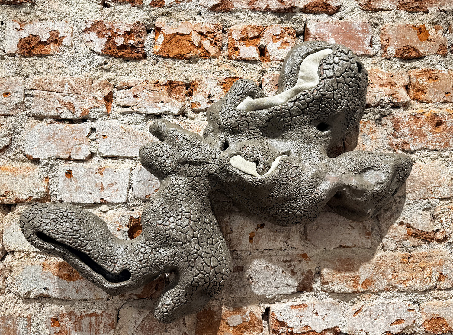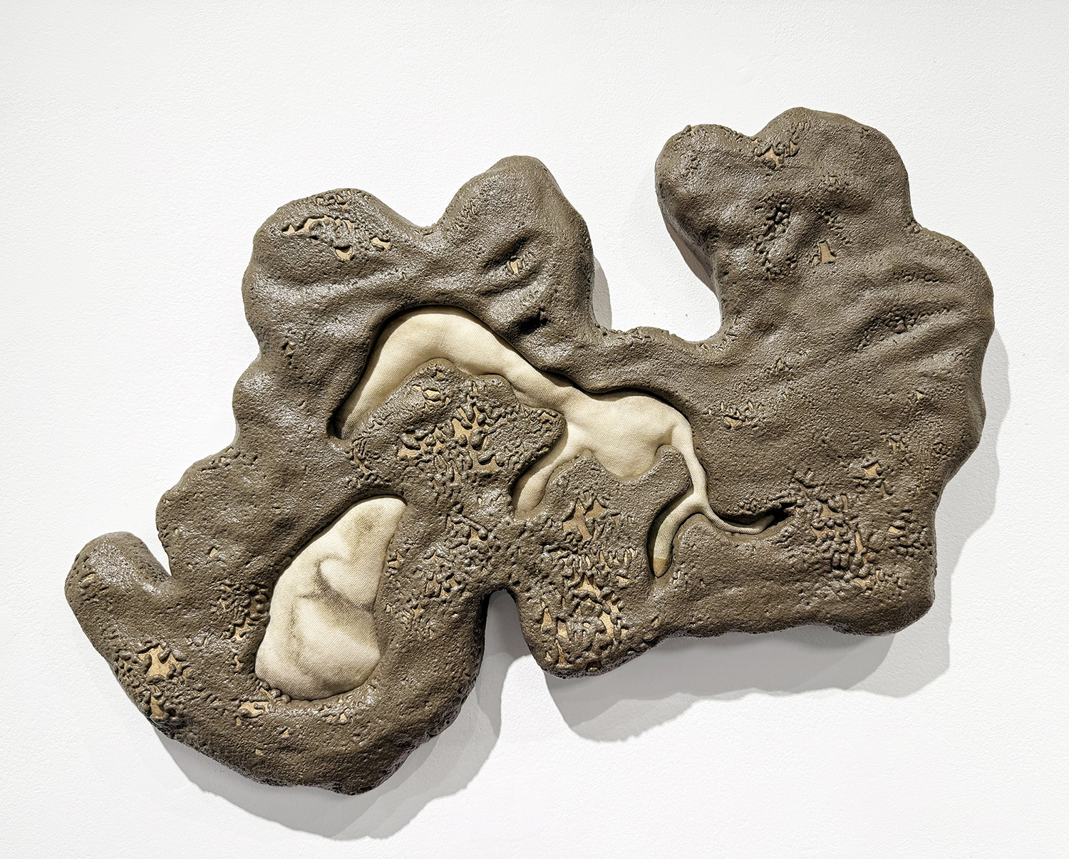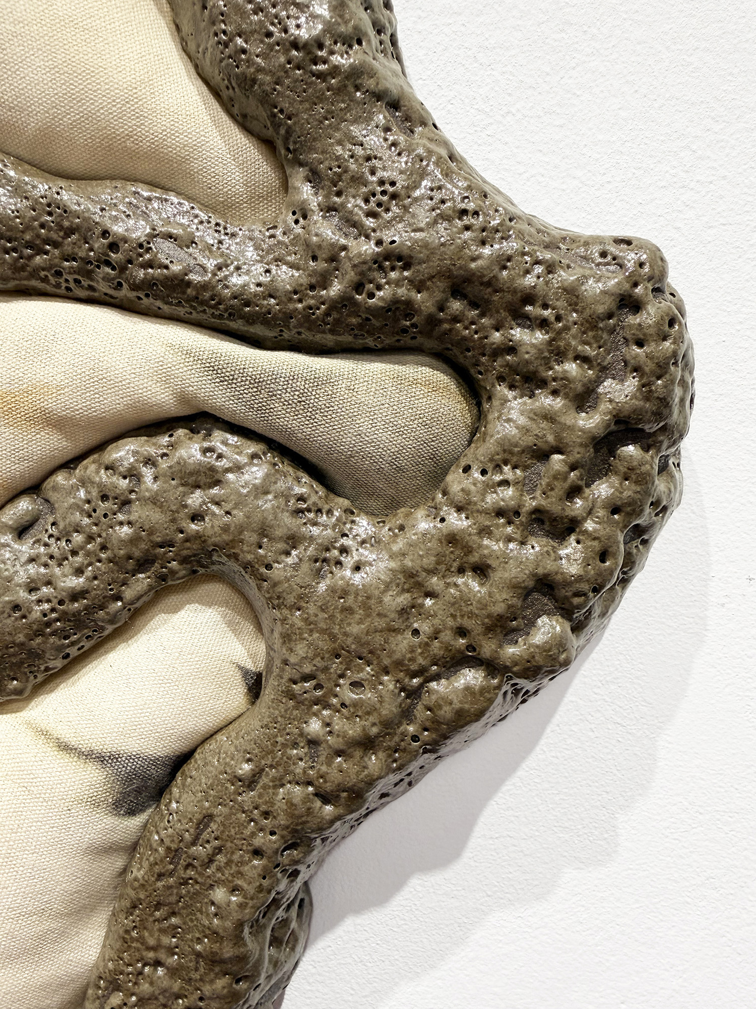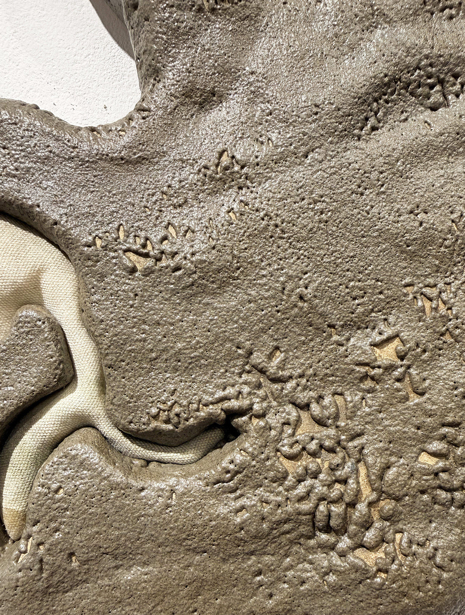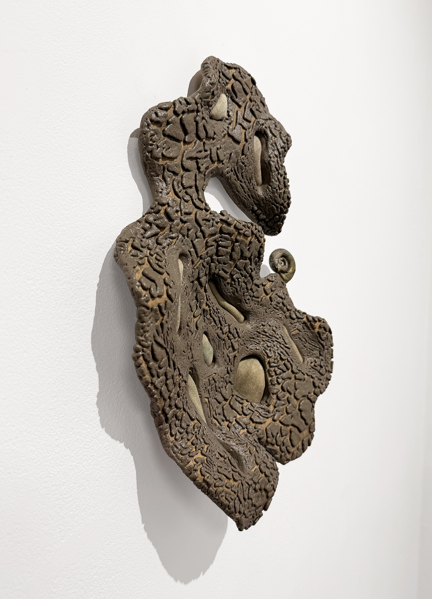 The artist turns her attention to the processes of sinking and surfacing—both as real phenomena in nature and as a metaphor for the human subconscious. In this project Maria presents her newest works, connected to her interest in ceramics. The material carries its own semantics and conjures an image of mud, as if scooped from the bottom of the Dragoman Marsh. The irregular rounded forms of these ceramic pieces, their textures and apertures, summon associations with water, earth, and living organisms—all those microscopic creatures that our eyes cannot catch but without which life would not flourish within this particular ecosystem. Marshes are alive and unpredictable; in them nature pulses by invisible laws, and Maria's works impress this upon us through the harmony of their “naturalness”. Into the openings of the ceramic forms the artist weaves fragments of canvas that was deliberately “swamped” (here the term is used by analogy with “buried”) at the bottom of the Dragoman Marsh and left there for six months.