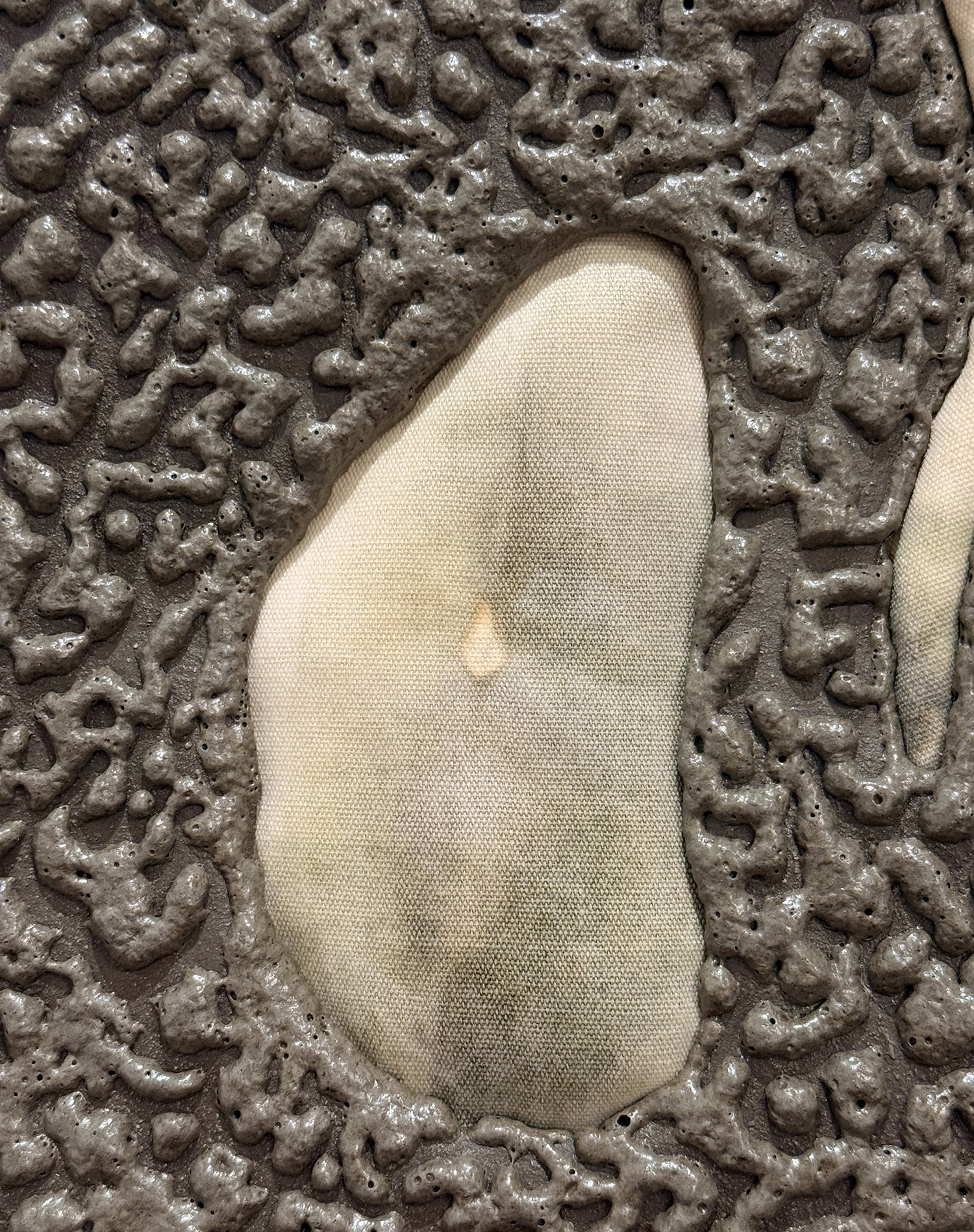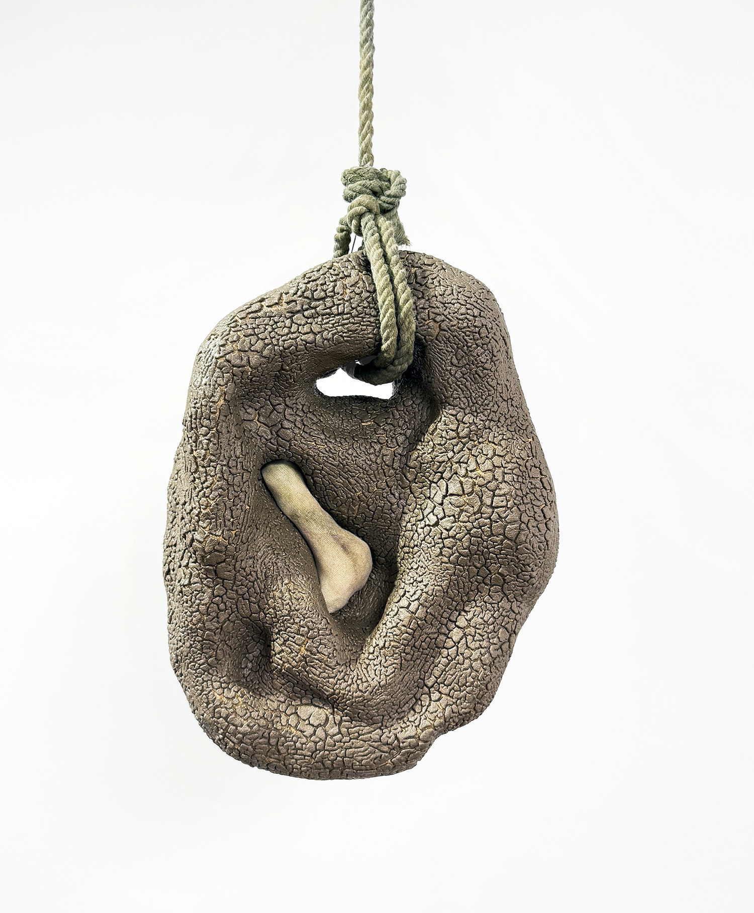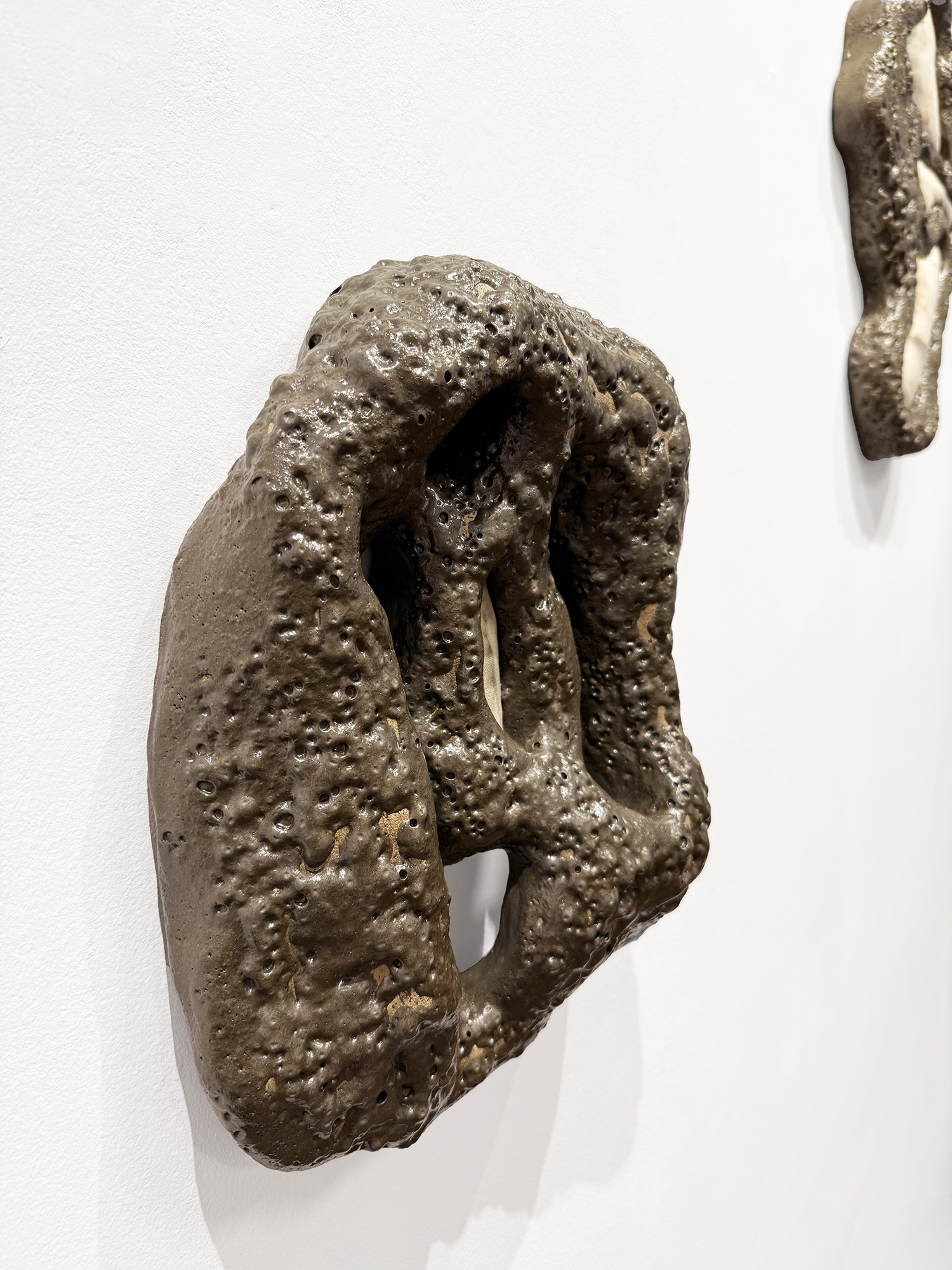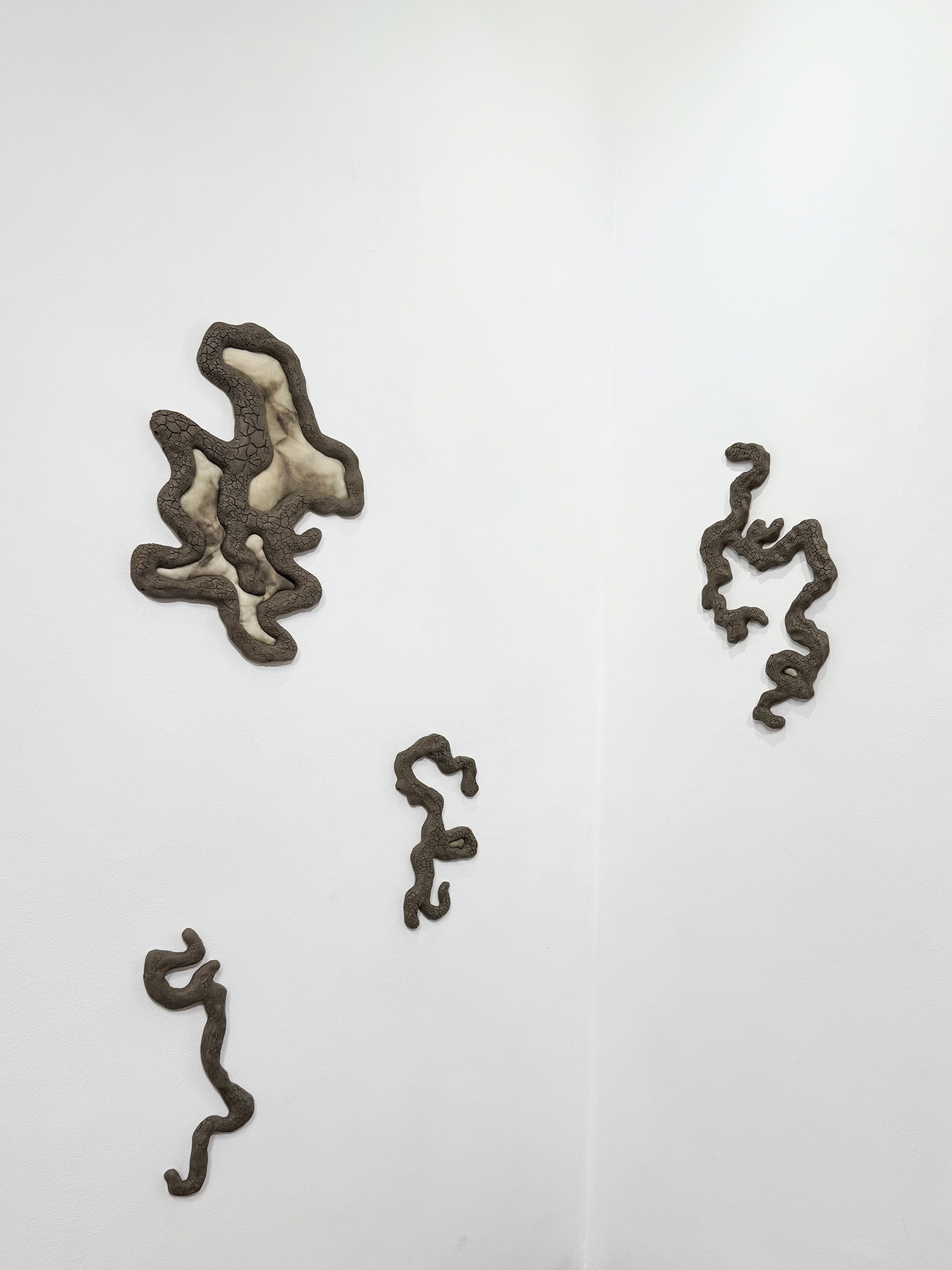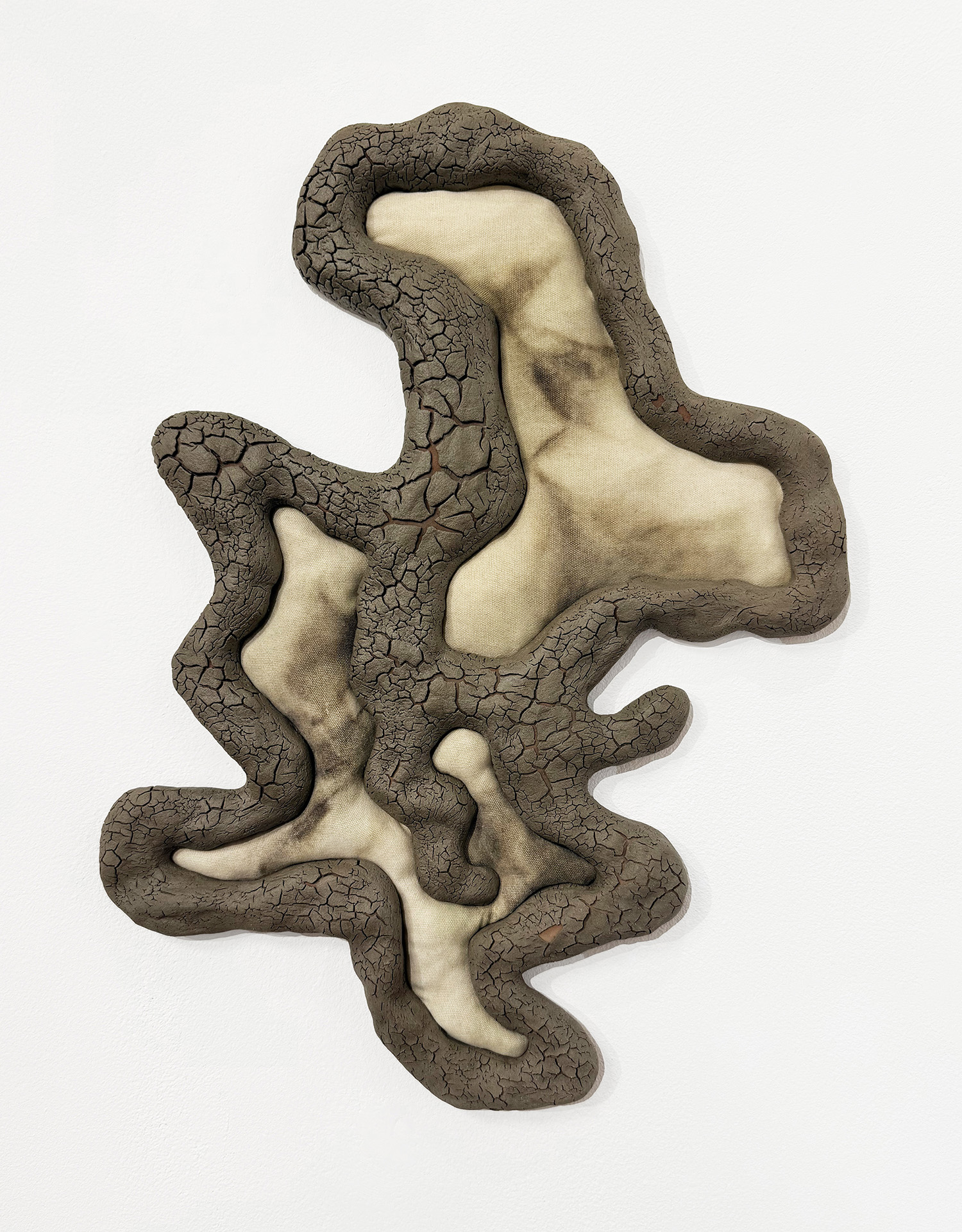 The artist turns her attention to the processes of sinking and surfacing—both as real phenomena in nature and as a metaphor for the human subconscious. In this project Maria presents her newest works, connected to her interest in ceramics. The material carries its own semantics and conjures an image of mud, as if scooped from the bottom of the Dragoman Marsh. The irregular rounded forms of these ceramic pieces, their textures and apertures, summon associations with water, earth, and living organisms—all those microscopic creatures that our eyes cannot catch but without which life would not flourish within this particular ecosystem. Marshes are alive and unpredictable; in them nature pulses by invisible laws, and Maria's works impress this upon us through the harmony of their “naturalness”. Into the openings of the ceramic forms the artist weaves fragments of canvas that was deliberately “swamped” (here the term is used by analogy with “buried”) at the bottom of the Dragoman Marsh and left there for six months.