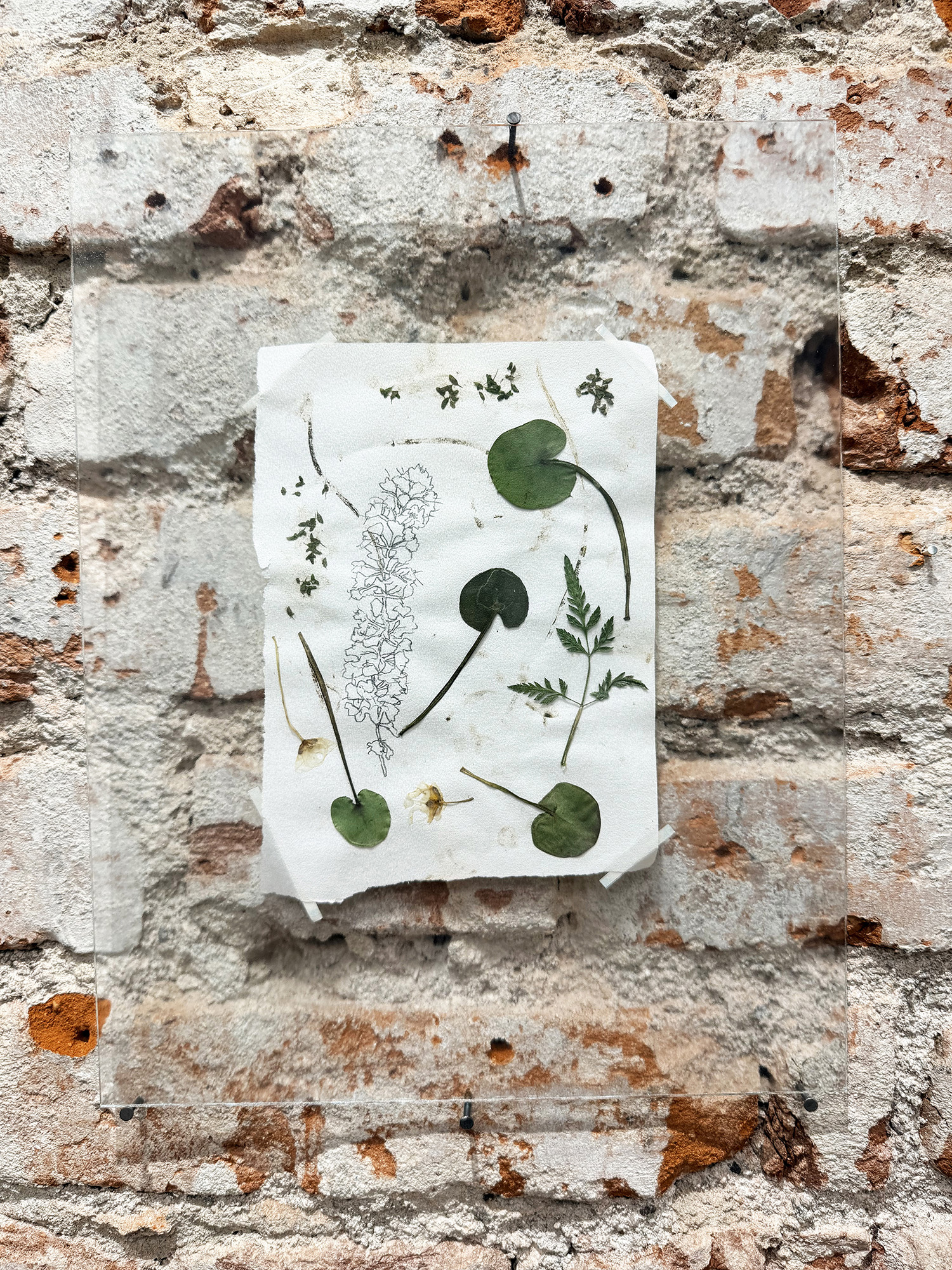 canvas soaked in Dragoman Marsh for six months, ceramic, recycled glaze, ink, digital print, herbarium, rope