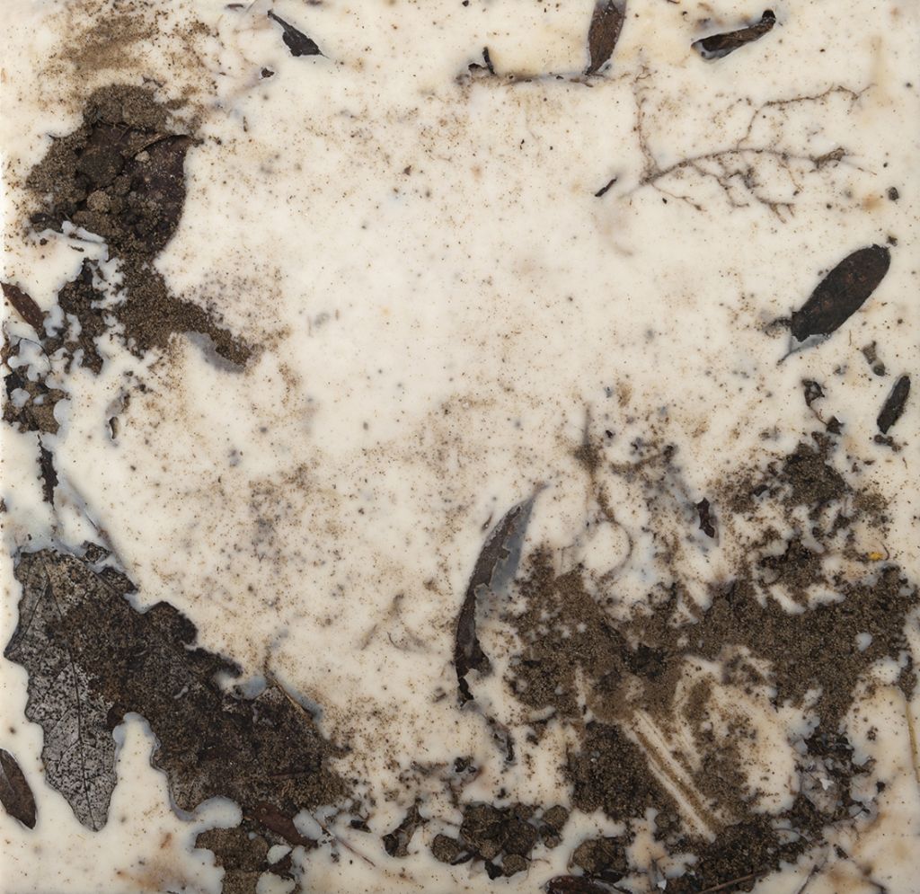 All these places appear in the video accompanying the object installation in the gallery space. Visitors witness the dreary, violated, and extracted sites and watch the process of ritual creating of the soap artifacts that, in their layers, bear evidence of ever-expanding aridity. This aridity is not just a climatic one; it also expands because of the lack of moral values and consideration for the world around and the society that lives in it. The complement to the installation is a text listing the ingredients of the soap bars. It seeps through the gallery walls and floor and thus allows for identifying the origin of the individual objects." -