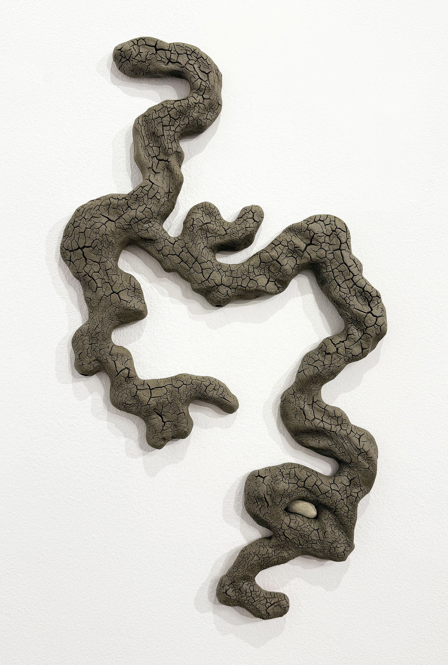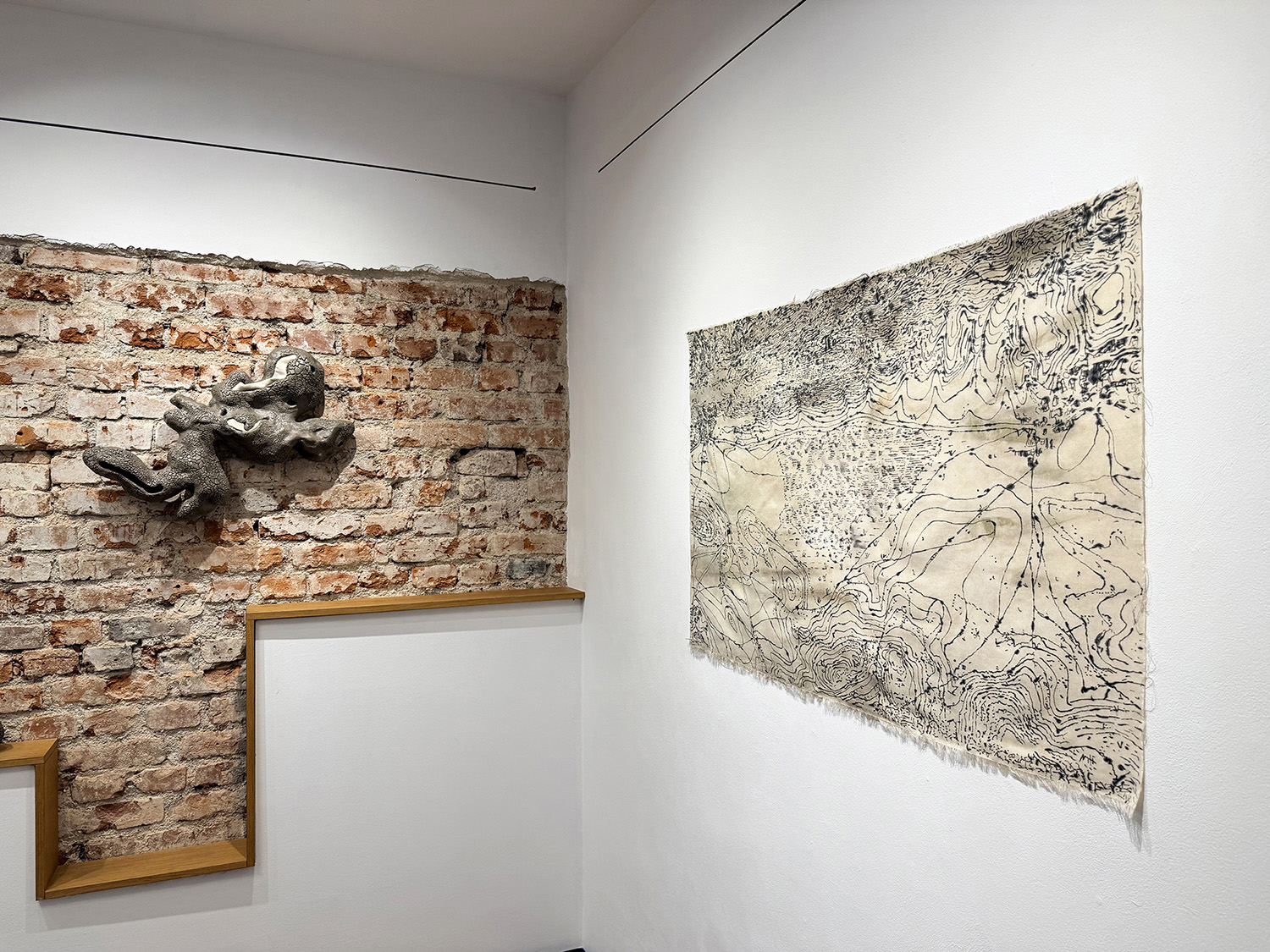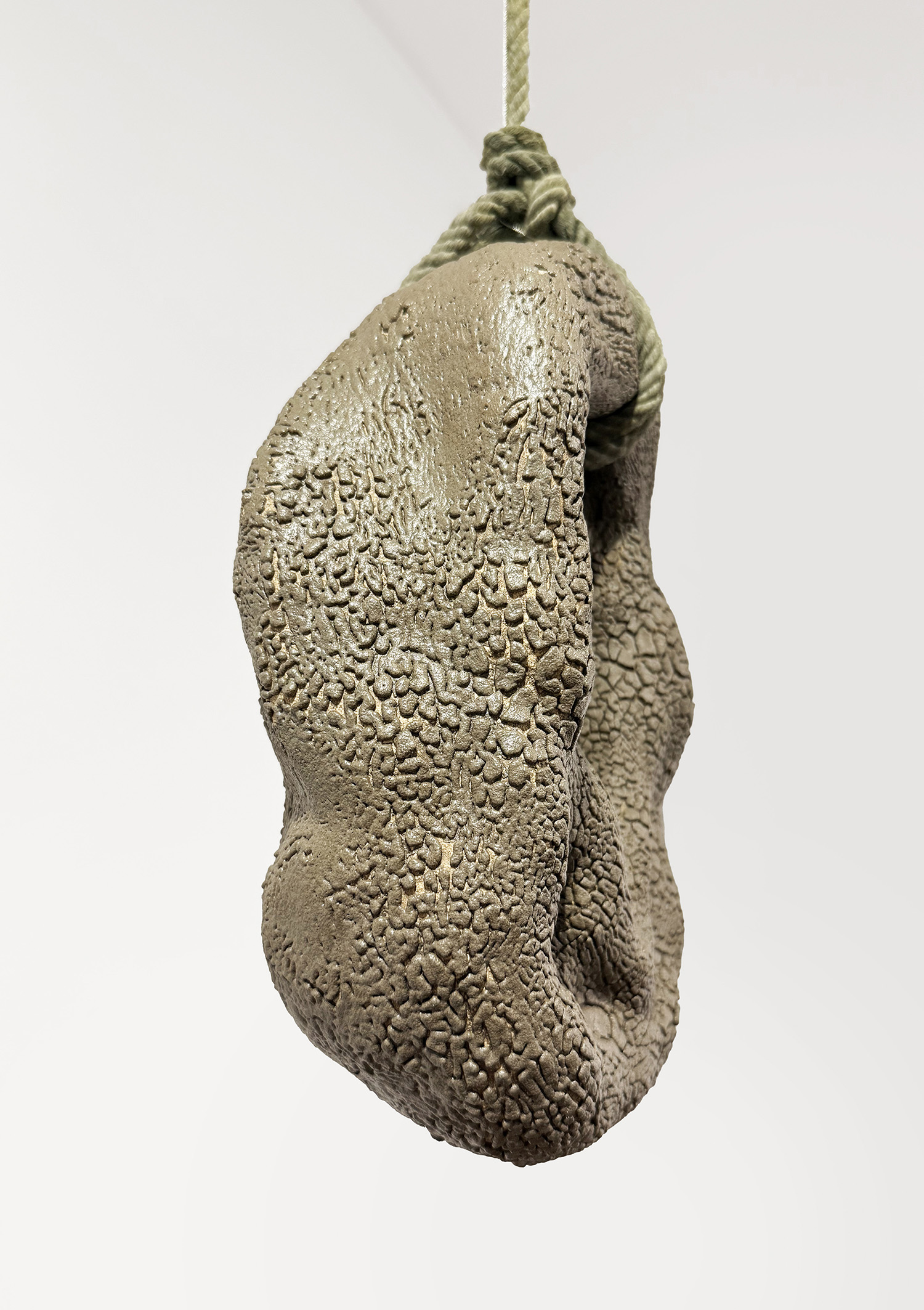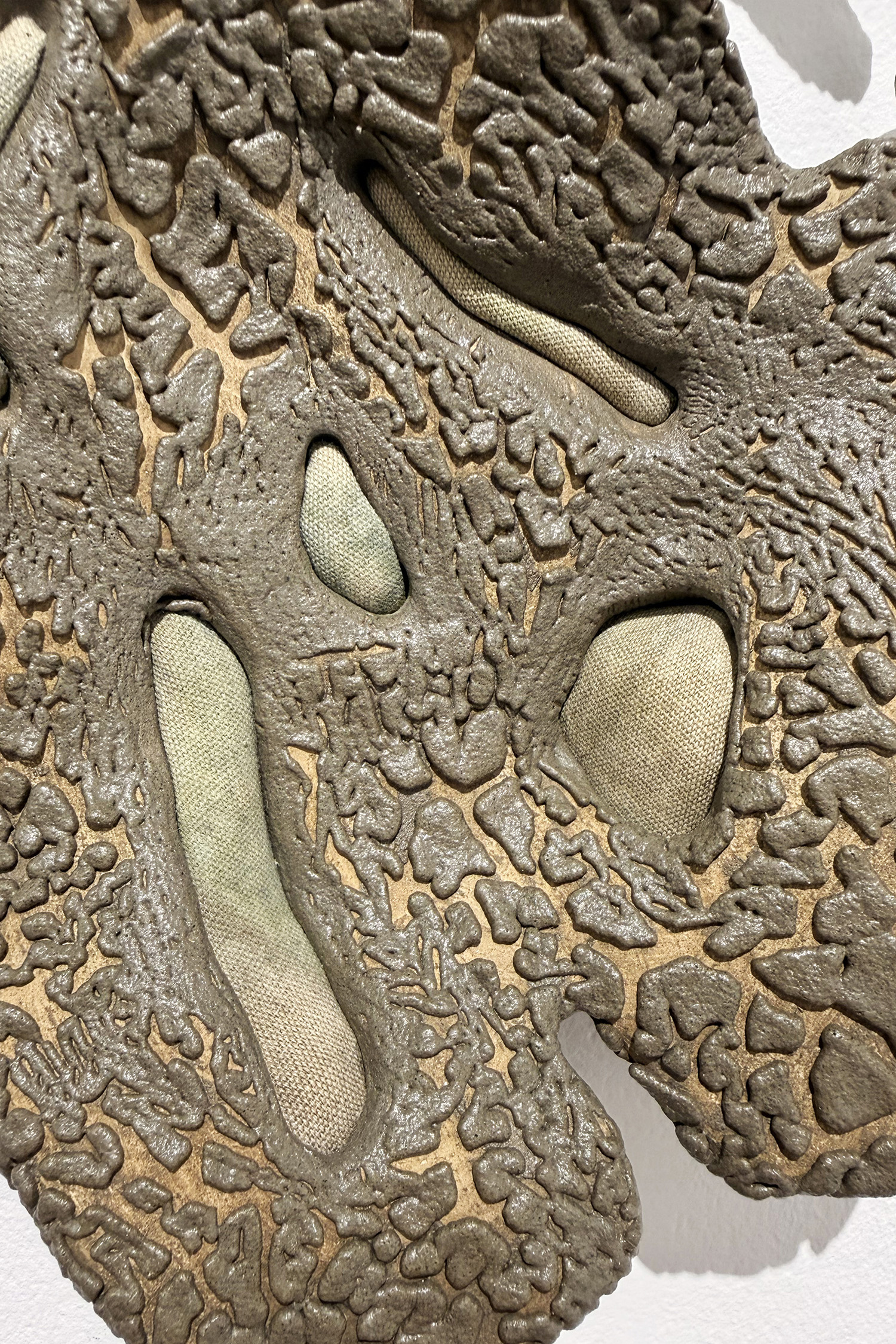 The artist turns her attention to the processes of sinking and surfacing—both as real phenomena in nature and as a metaphor for the human subconscious. In this project Maria presents her newest works, connected to her interest in ceramics. The material carries its own semantics and conjures an image of mud, as if scooped from the bottom of the Dragoman Marsh. The irregular rounded forms of these ceramic pieces, their textures and apertures, summon associations with water, earth, and living organisms—all those microscopic creatures that our eyes cannot catch but without which life would not flourish within this particular ecosystem. Marshes are alive and unpredictable; in them nature pulses by invisible laws, and Maria's works impress this upon us through the harmony of their “naturalness”. Into the openings of the ceramic forms the artist weaves fragments of canvas that was deliberately “swamped” (here the term is used by analogy with “buried”) at the bottom of the Dragoman Marsh and left there for six months.