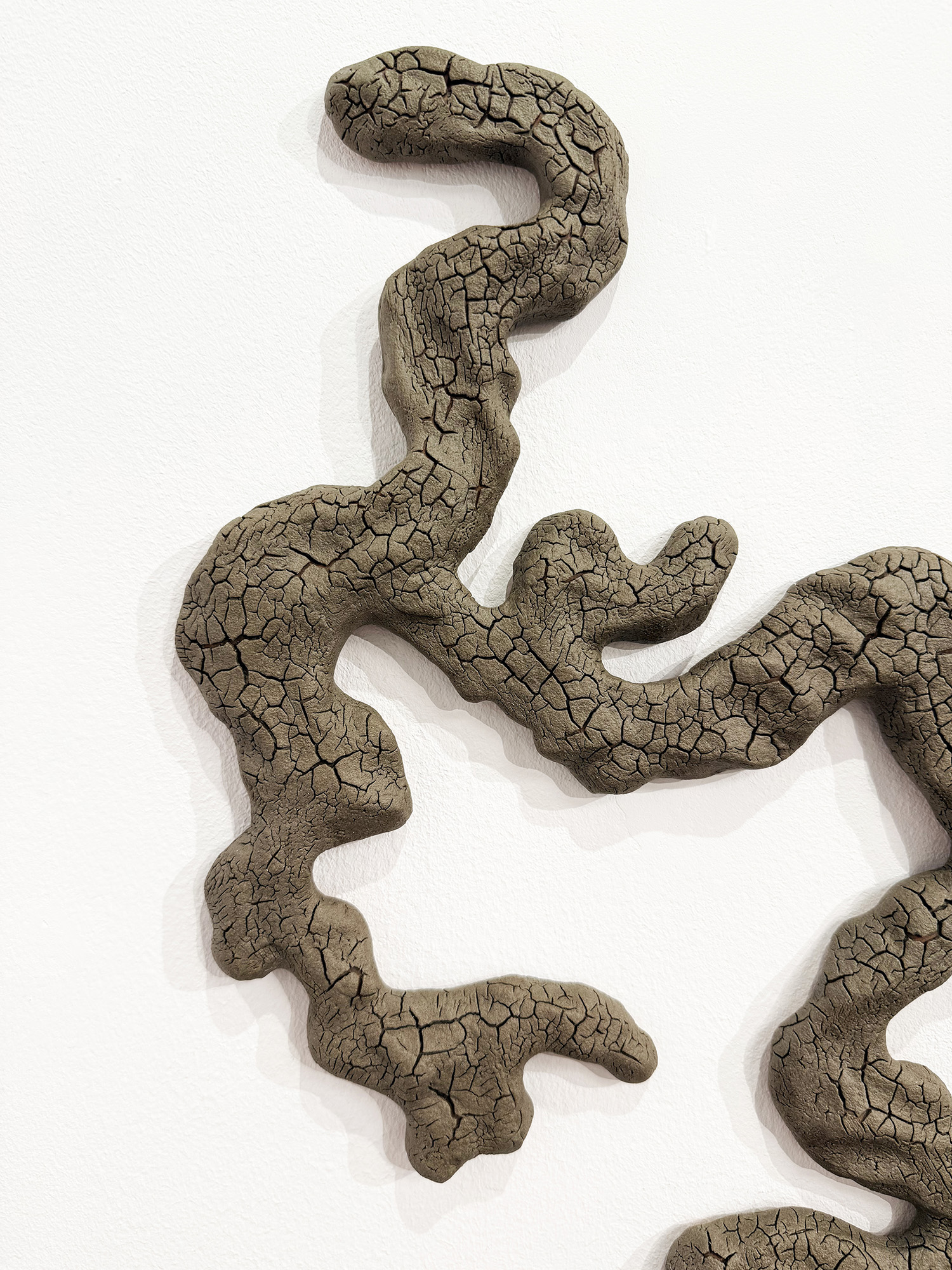 The theme of submergence and of the transformations that occur as a result of it occupies a central place in this project. Maria almost ritually buries two canvases in the marsh, but later finds only one of them; the other has been carried away by natural processes in an unknown direction. There is something deeply metaphorical in the idea of the marsh's memory—it recalls human memory, in which certain things sink but do not disappear; one leaves them in one place only to fail to find them there, because invisible forces have silted them over. Yet nothing is lost. Even now, somewhere at the bottom of the Dragoman Marsh, beneath layers of silt, lies the canvas Maria left with the desire to capture the elusive memory of this place. In this way her ceramics are connected to processes in nature, but they also prompt us to think about the nature of the human subconscious. It is a semantically laden, invisible matter that resembles transparent silt; it draws things into itself, and the processes of sinking and surfacing are not always within our control.